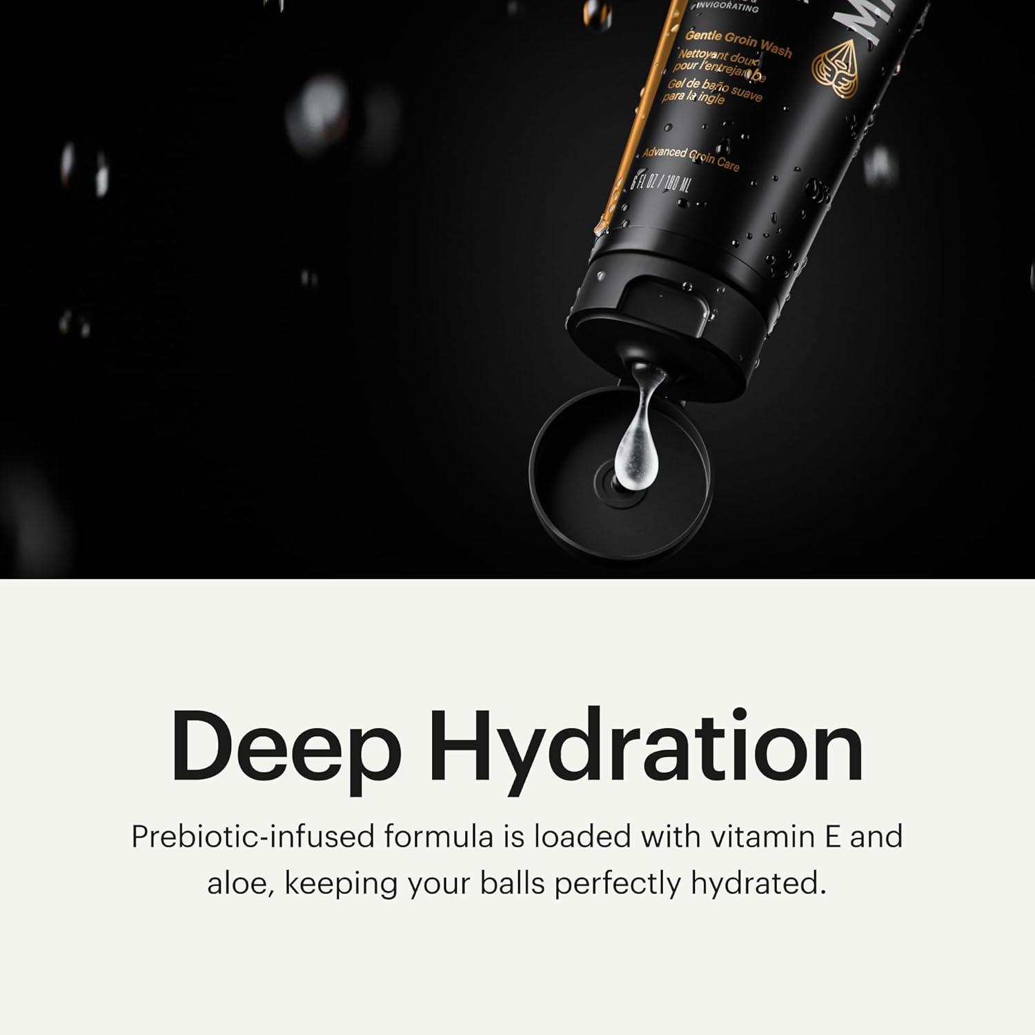 CROP CLEANSER: A gentle groin wash with a clean, prebiotic-infused formula loaded with vitamin E, aloe, and menthol to keep the boys soft, supple, and well hydrated. The clean formula is powerful, yet delicate on your most prized possessions.