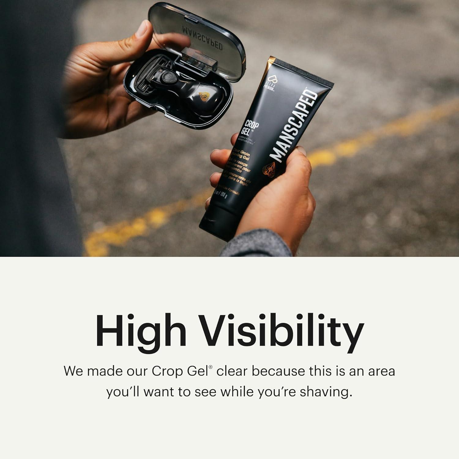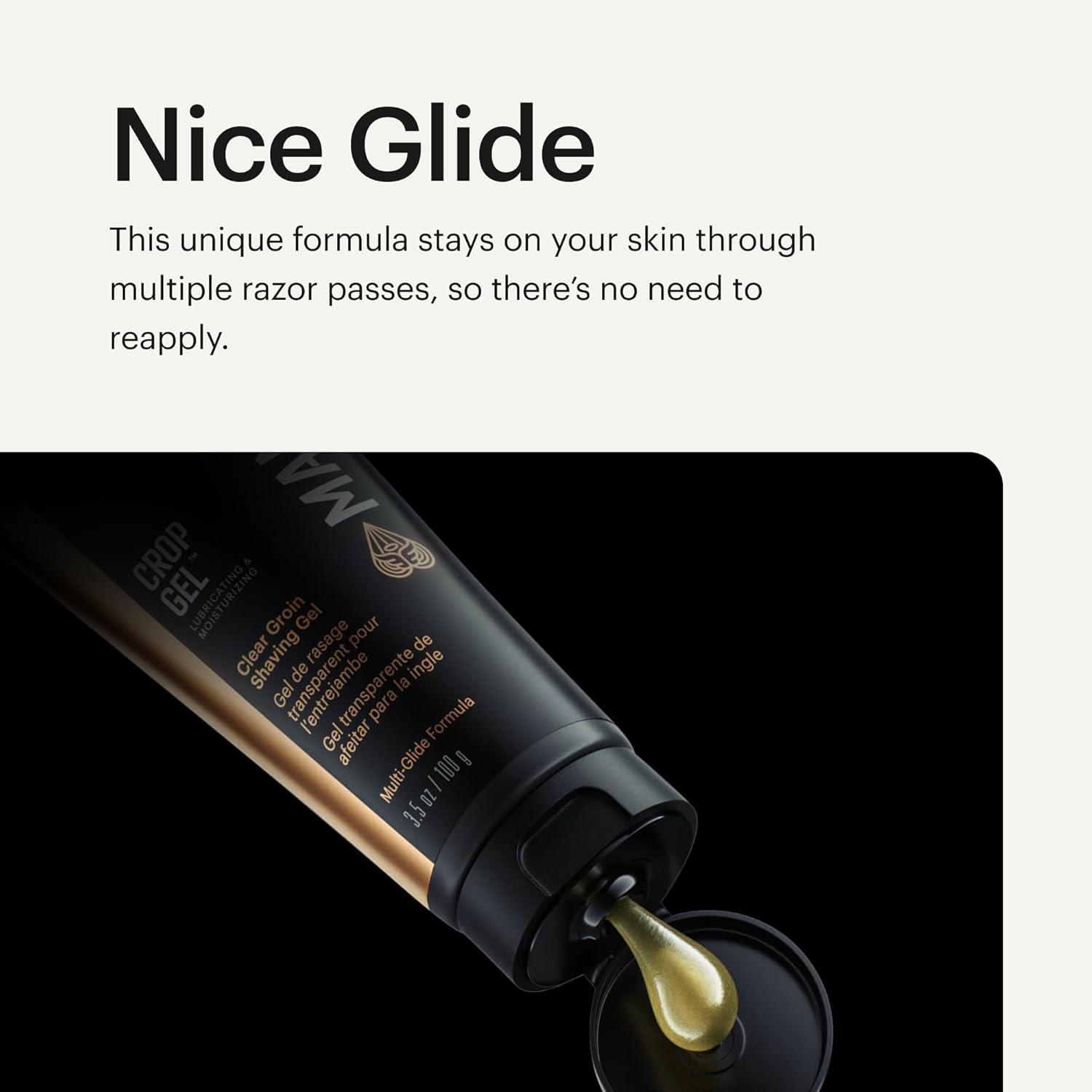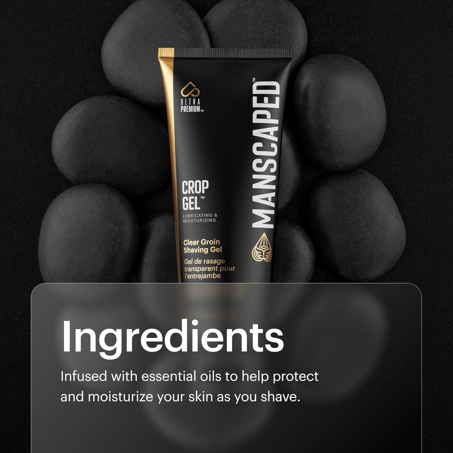 CROP GEL: is a unique clear ball shaving gel specially formulated for the groin area so you can see what you’re shaving. Mildly important.