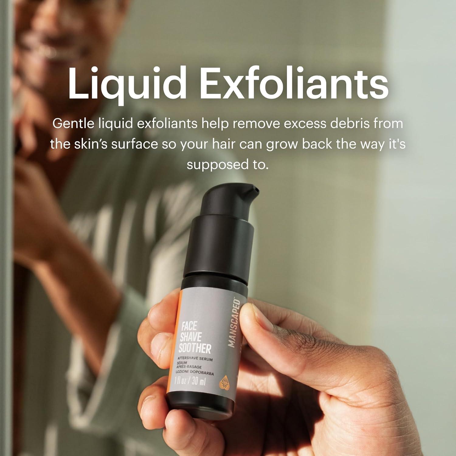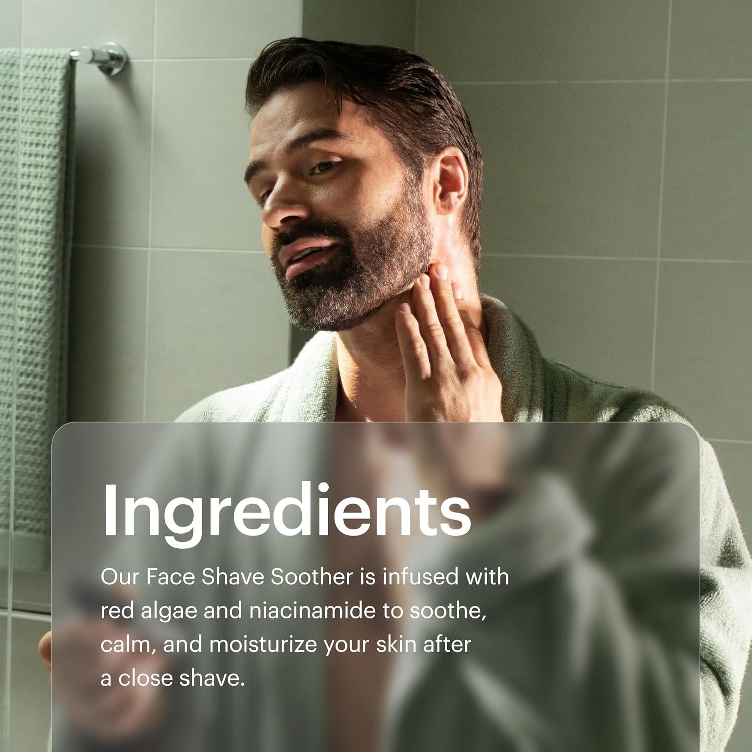 INGREDIENTS: Our Face Shave Soother is infused with red algae, niacinamide, and gentle liquid exfoliants to soothe, calm, and moisturize your skin after a close shave.
