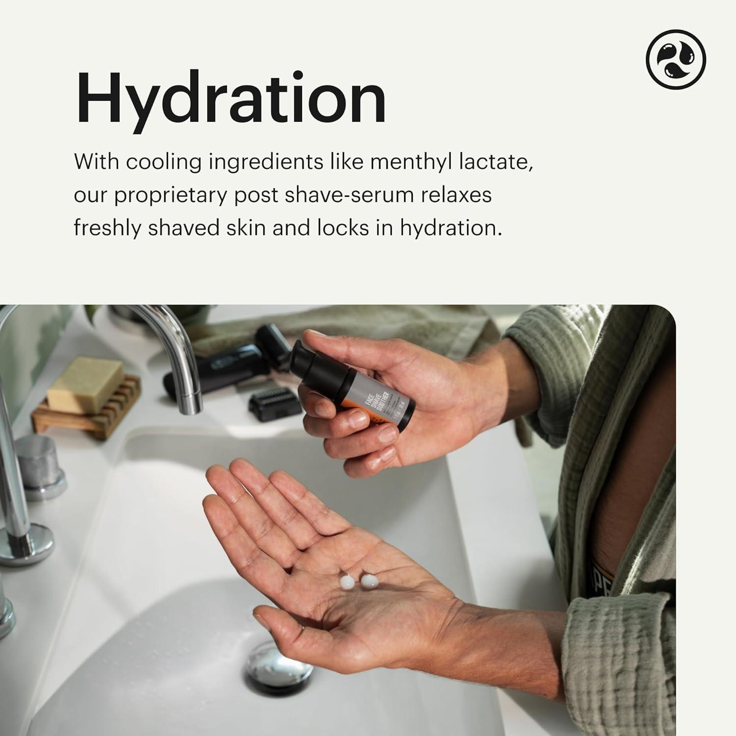 SWEET RELIEF: With cooling ingredients like menthyl lactate, our proprietary post shave-serum relaxes freshly shaved skin and locks in hydration.