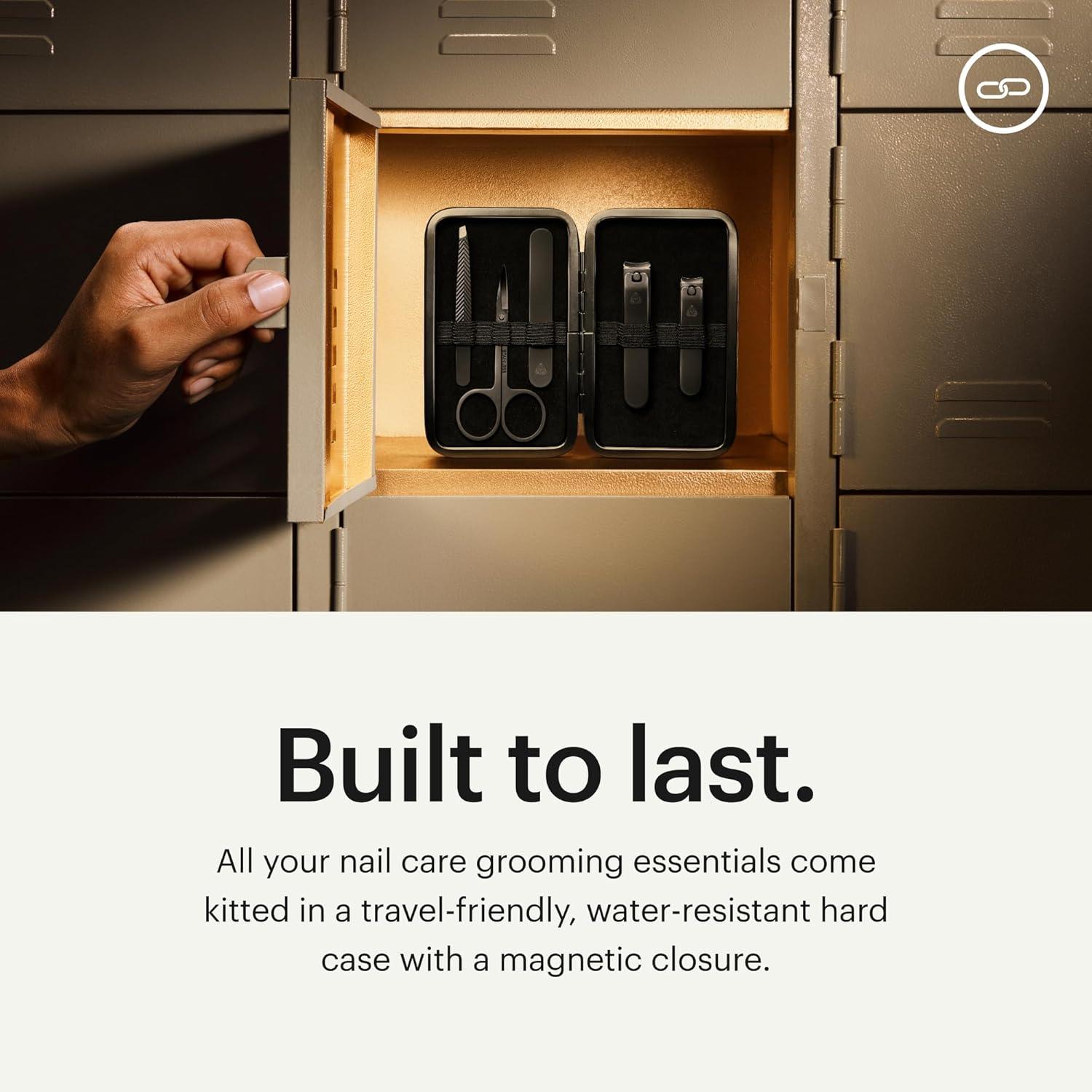 THE SHEARS 3.0: All your nail care grooming essentials come kitted in a travel-friendly, water-resistant hard case with a magnetic closure. Inside, each stainless-steel tool is held firmly in place so you can toss it in your gym bag or carry-on with confidence.
