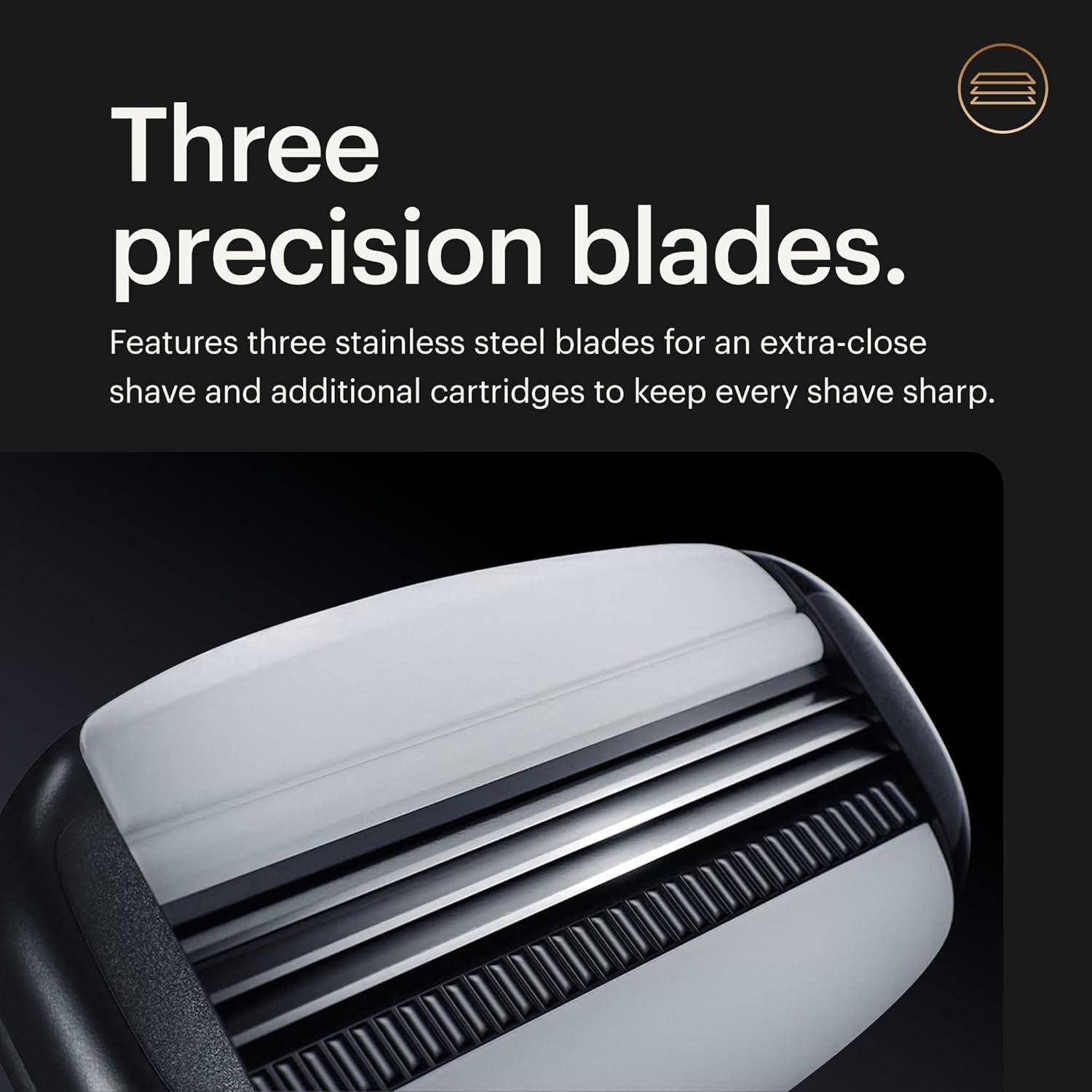 PRECISION ENGINEERED BLADES: Features three ultra-sharp stainless steel blades designed for a close and smooth shave in men’s intimate areas.