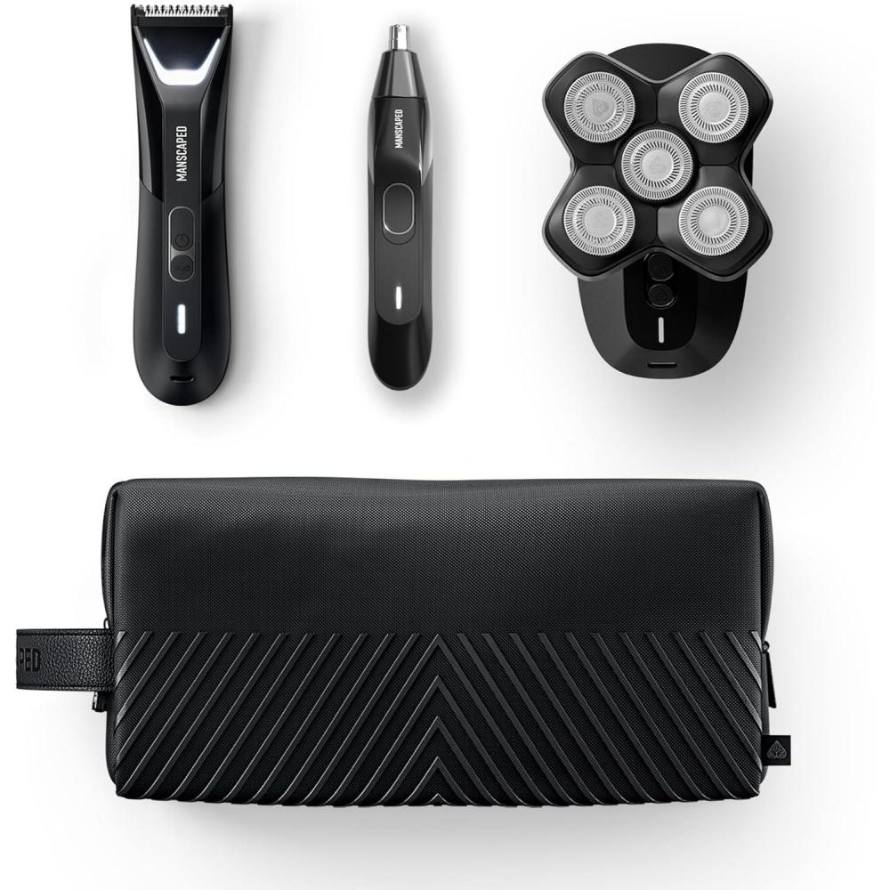 The Dome Shaver PRO, The Lawn Mower 5.0 ULTRA, Weed Whacker 2.0, and The Shed 2.0. This all-in-one kit is designed for the modern man who values precision, comfort, and convenience in his grooming routine. The Dome Shaver PRO ensures a smooth head shave, while The Lawn Mower 5.0 Ultra provides a close, yet gentle trim for your body. The Weed Whacker 2.0 effortlessly handles unwanted nose and ear hair with its powerful motor and SkinSafe Technology. Finally, keep all your tools organized and protected with The Shed 2.0, a sleek, durable toiletry bag that’s perfect for travel or home storage. Elevate your grooming game with this essential bundle.