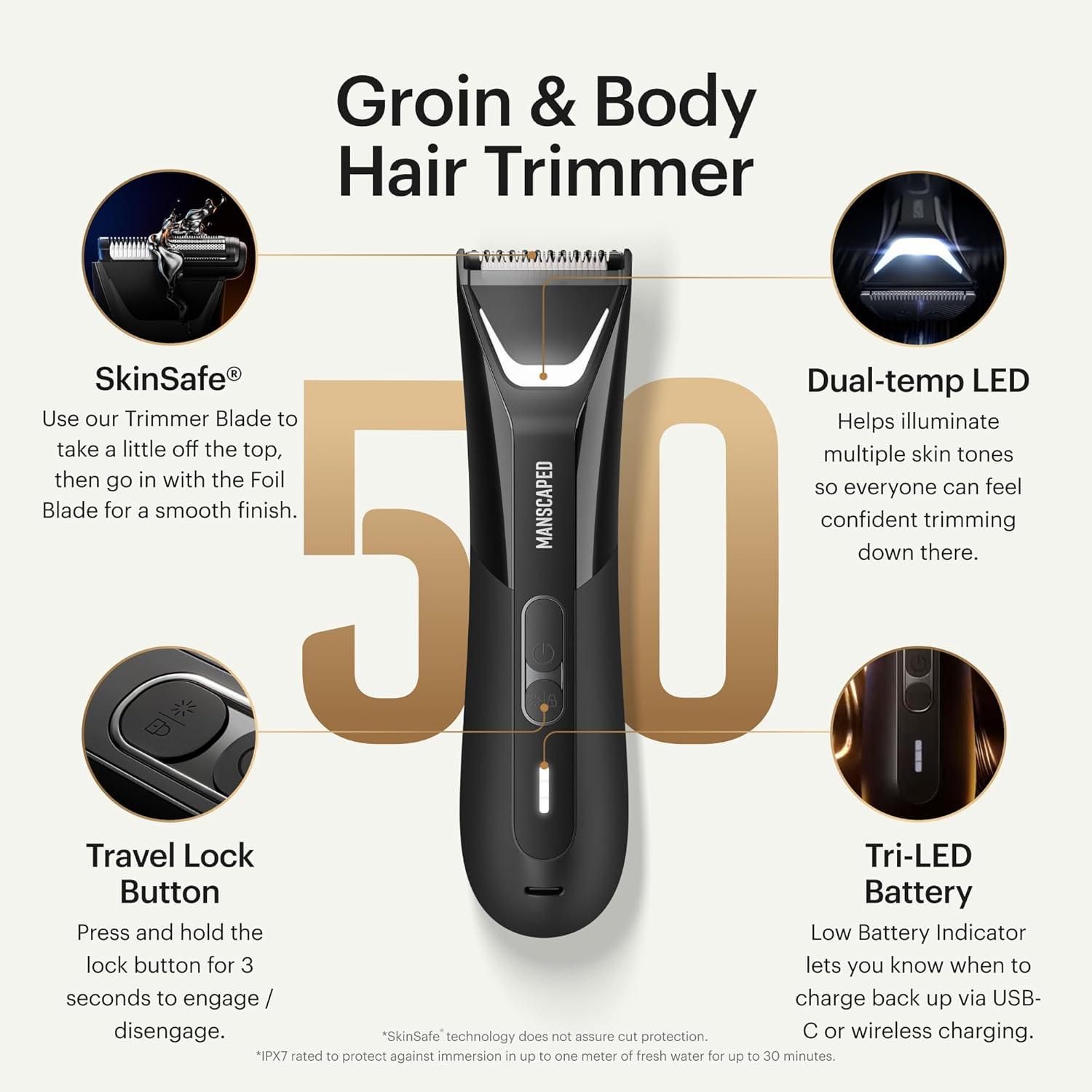 LIGHT YOUR SPOT: Grooming below the waist shouldn’t be a guessing game. Dual-temp LEDs better illuminate multiple skin tones so everyone can feel confident trimming down there. Spend more time trimming, less time charging with a 700mAh Li-ion battery that holds a charge for up to 60 minutes. A travel lock helps reduce accidental powering on of the device, so your trimmer is fully juiced when you arrive at your destination. Press and hold the lock button for 5 seconds to engage / disengage.